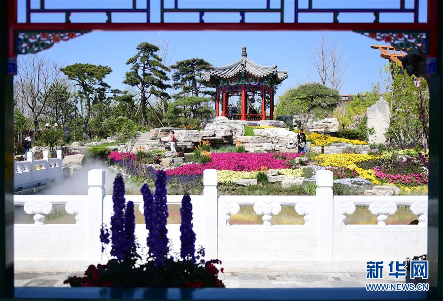 5月1日拍摄的北京世园会北京园。 当日,以“美丽北京 绽放世园”为主题的北京世园会“北京日”活动开幕,将于5月1日至3日举办近50场活动,重点展示北京生态文明建设成果、历史文化名城形象及现代国际大都市发展和对外交往成就。 新华社记者 张晨霖 摄