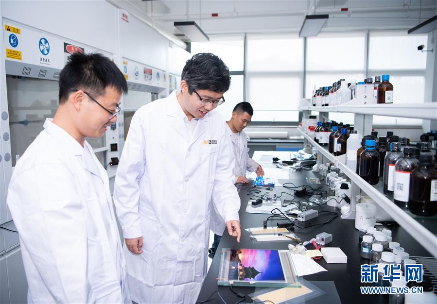 创业者雷震(中)在珠海的公司内(4月29日摄)。雷震是纳金科技创始人、董事长。2014年定居澳门,2015年在珠海创办纳金科技,专注柔性透明导电材料创新及产业化应用,已有20余项创新技术产品产业化落地成功。 粤港澳大湾区为创新创业提供难得的机遇,众多中青年创业者选择在这里落脚扎根,越来越多科技、文化、金融等类型的中小企业萌发成长,投入到国家高速发展的热潮中。 新华社记者 张金加 摄