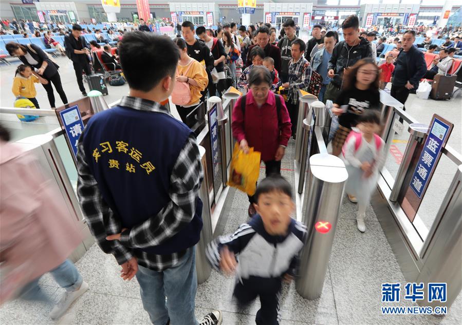 5月1日,旅客在贵阳北站检票上车。 当日,贵阳铁路迎来“五一”客流高峰。 新华社记者 刘续 摄