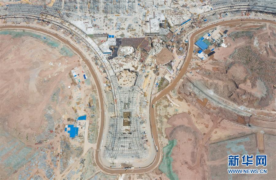 成都天府国际机场施工现场一角(5月1日无人机拍摄)。新华社记者 江宏景 摄