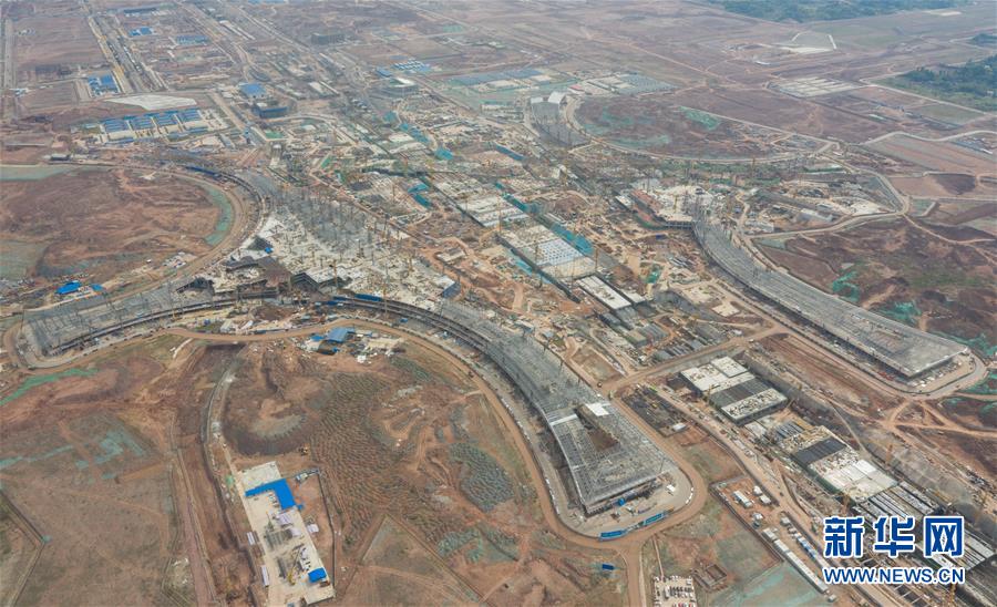 俯瞰成都天府国际机场施工现场(5月1日无人机拍摄)。 新华社记者 江宏景 摄