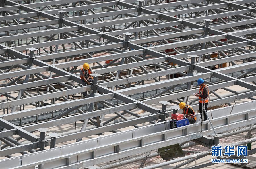 5月1日,建筑工人在成都天府国际机场施工现场工作。新华社记者 江宏景 摄
