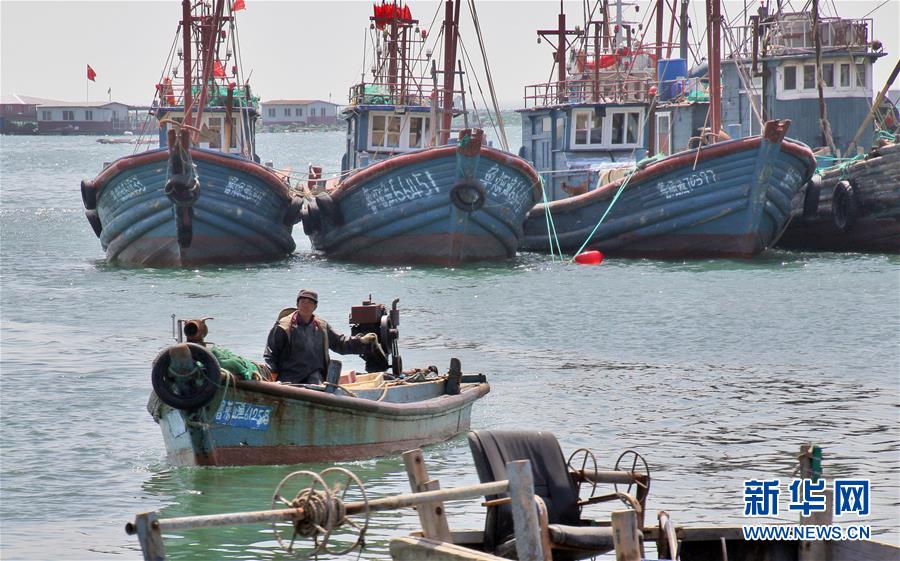 5月1日,渔船陆续返回山东烟台芝罘岛东口渔港准备休渔。 5月1日起,我国渤海、黄海、东海和北纬12度以北的南海海域进入海洋伏季休渔期。 新华社发(唐克 摄)