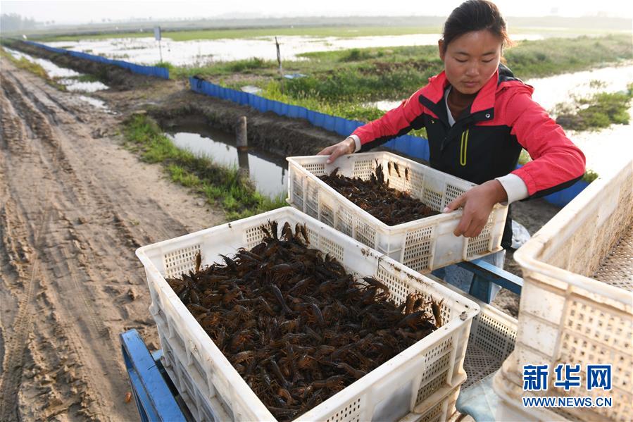 5月1日,在合肥巽风湖生态农业有限责任公司,赵九梅将小龙虾装箱准备出售。 今年26岁的赵九梅来自安徽阜阳,2013年进入安徽农业大学农学院学习。2015年,赵九梅进入学校“现代青年农场主”实验班,系统学习农业生产、经营及管理方面的知识,并在合肥巽风湖生态农业有限责任公司进行创业孵化,大学毕业后她成为该公司的总经理。 从农学专业的大学生到农业经营主体带头人,赵九梅带领团队实行“公司+基地+农户”的经营模式,通过稻虾共养、林下养鸡、旅游采摘等方式,收获了经济效益,还带动周边农民脱贫致富。 赵九梅告诉记者,她对土地有感情,希望为乡村振兴贡献力量。 新华社记者 张端 摄
