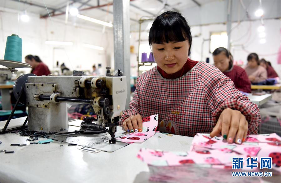 5月2日,河北南和县三思乡东北部村村民在当地一“扶贫车间”内加工书包。 近年来,河北省南和县结合脱贫攻坚工作实际和贫困群众需求,鼓励当地手工加工企业进驻农村开设“扶贫车间”,让农村剩余劳动力和贫困群众就近从事手工业加工等工作,拓宽农民增收渠道。目前,南和县已开设村级“扶贫车间”160余个,涉及服装加工、箱包制作等多个行业,带动3500余名群众实现就业增收。 新华社记者 朱旭东 摄