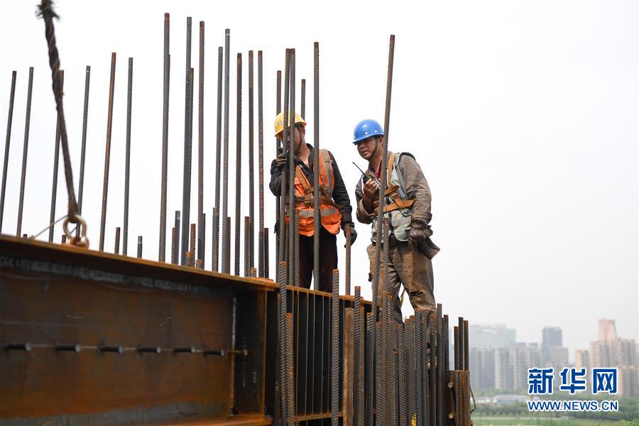 5月2日,中建三局的建设者在“浙江智慧之门”项目工地进行钢梁吊装作业。 “五一”小长假期间,众多劳动者仍然在建设工地上忙碌,在劳动中度过假期。 新华社记者 黄宗治 摄