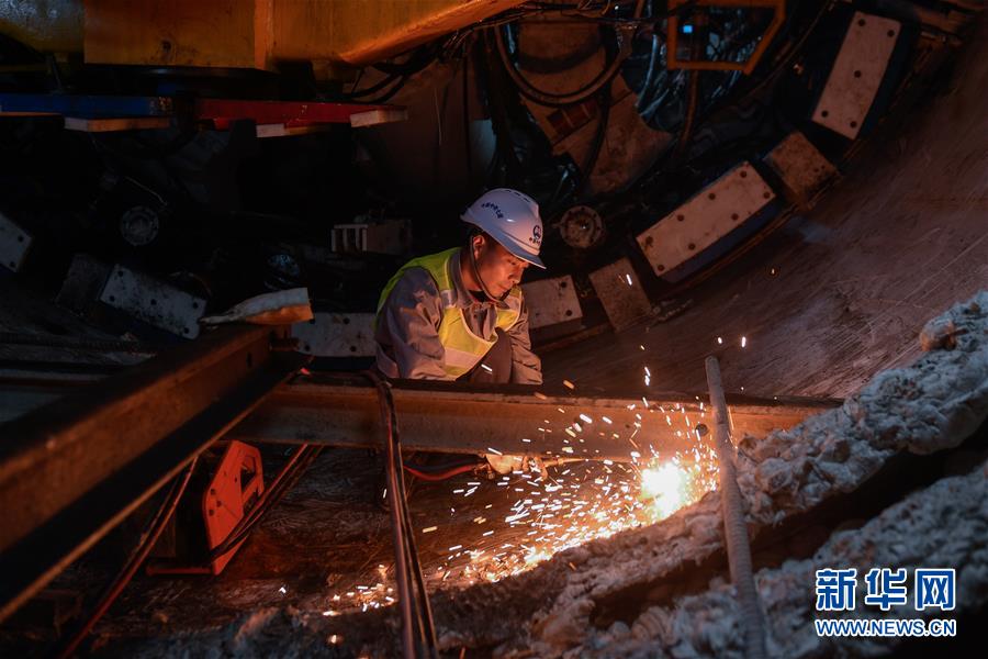 5月2日,中铁七局西安公司的建设者在杭州地铁7号线工地为盾构机掘进做准备工作。 “五一”小长假期间,众多劳动者仍然在建设工地上忙碌,在劳动中度过假期。 新华社记者 黄宗治 摄