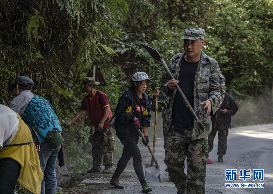 云南贡山县独龙江乡巴坡村委会主任王世荣(右一)带领乡亲们一起劳动(4月25日摄)。 新华社记者 江文耀 摄