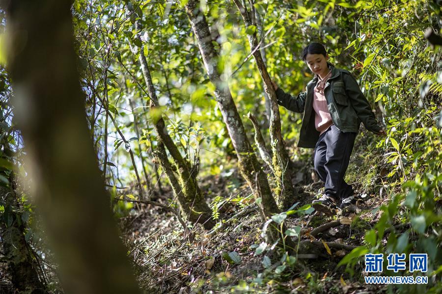 云南贡山县独龙江乡巴坡村森林资源管护队小队长木秋云在林间巡护(4月25日摄)。新华社记者 江文耀 摄
