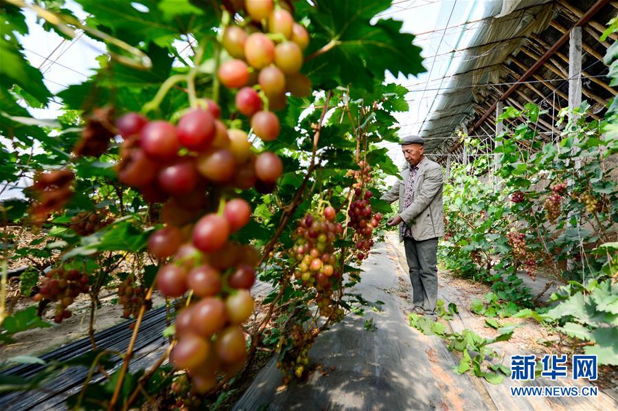 5月3日,吐鲁番市鄯善县辟展镇农民在大棚内修剪葡萄藤。