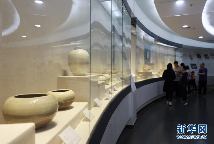 5月3日,参观者在河北省邢台市内丘县邢窑博物馆参观。