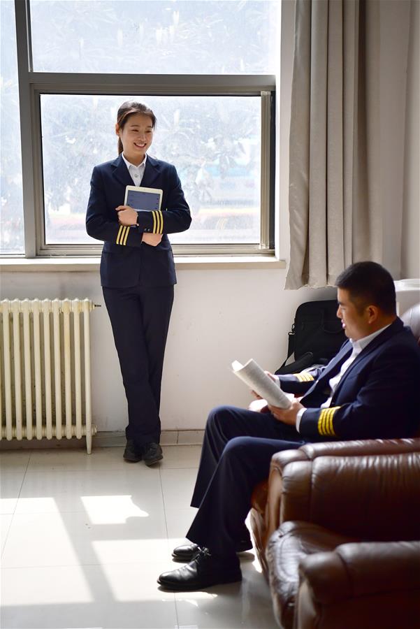 新华社照片,西安,2019年5月3日 试飞员“姐妹花”的使命传承 试飞员蒋丹丹(左)与同事在办公室等待进行试飞任务(3月26日摄)。 (配本社同题文字稿) 新华社记者 邵瑞 摄