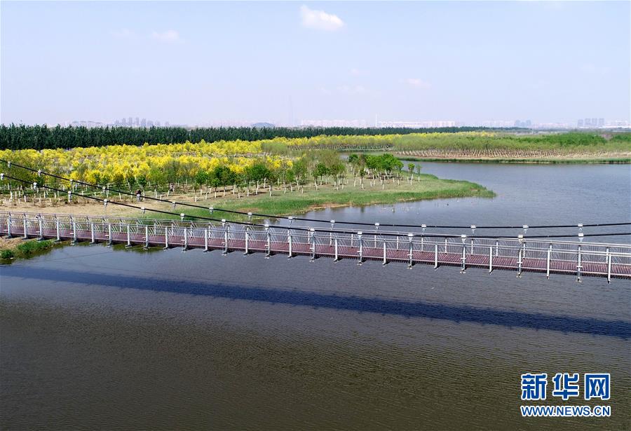 无人机拍摄的西青郊野公园内的长桥景观(4月26日摄)。