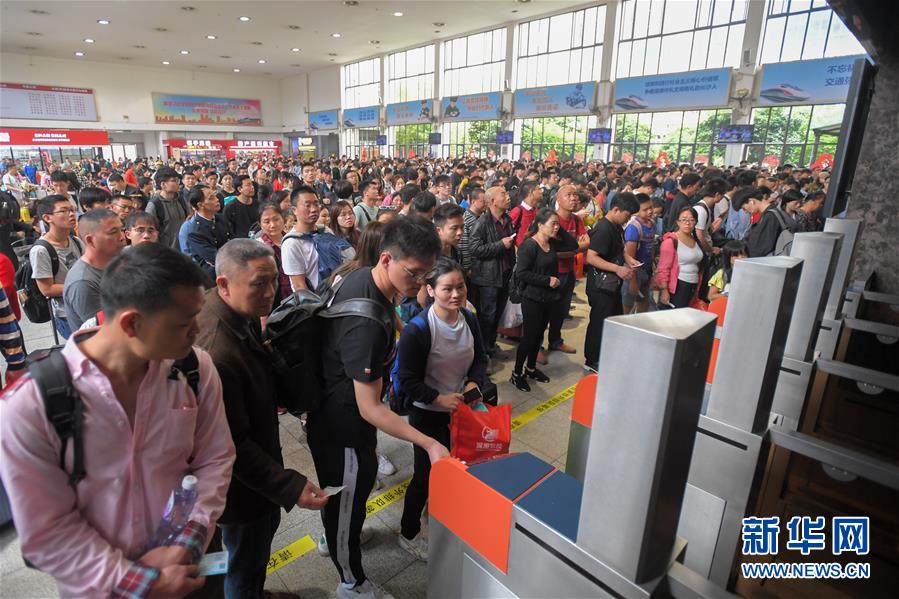 5月4日,旅客在长沙火车站检票进站。 当日是“五一”小长假最后一天,长沙火车站迎来返程客流高峰。 新华社发(陈泽国 摄)