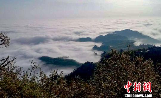 5月4日,国家5A级景区甘肃崆峒山雨后艳阳高照,云海波浪翻滚。 徐振华 摄