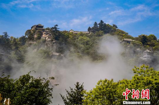 5月4日,国家5A级景区甘肃崆峒山雨后艳阳高照,云海波浪翻滚,座座山峰层峦叠嶂,庙宇置身云海,仿佛云端里的仙居,使人感到如入仙境。