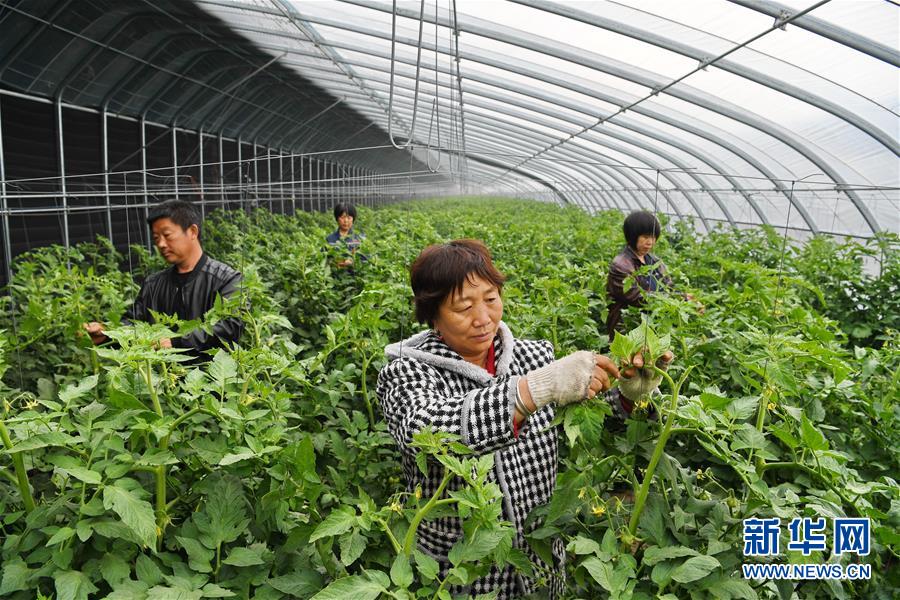 5月4日,滦州市茨榆坨镇芦苇庄村村民在大棚内管护西红柿。