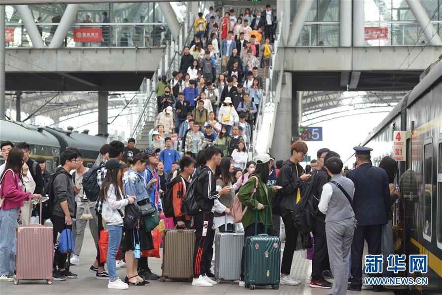 5月4日,旅客在安徽阜阳火车站准备乘车。 当日是“五一”假期的最后一天,各地迎来返程客流高峰。 新华社发(卢启建 摄)