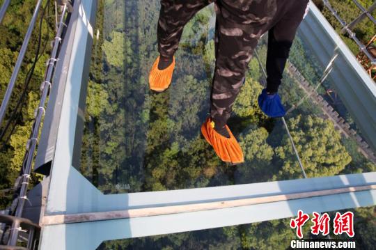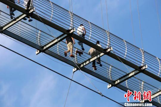 玻璃桥吸引了不少民众前来体验。 许丛军 摄