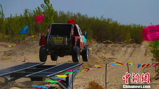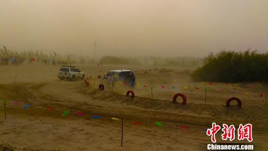 沙尘暴来袭,选手驾车正常比赛。 王小军 摄