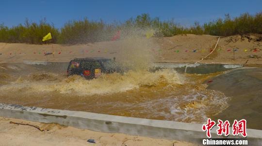 当天比赛,部分选手驱车速度过快,在涉水场“抛锚”。 王小军 摄