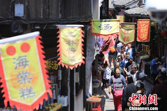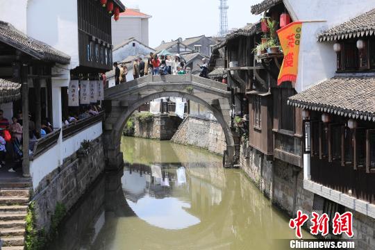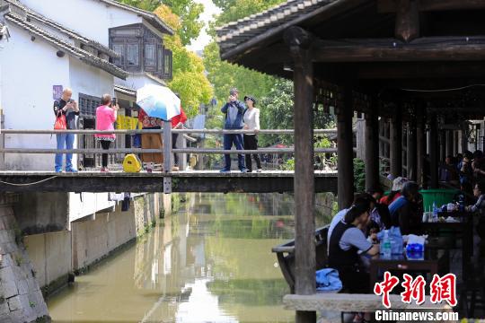 游客们在上海新场古镇游玩。 殷立勤 摄