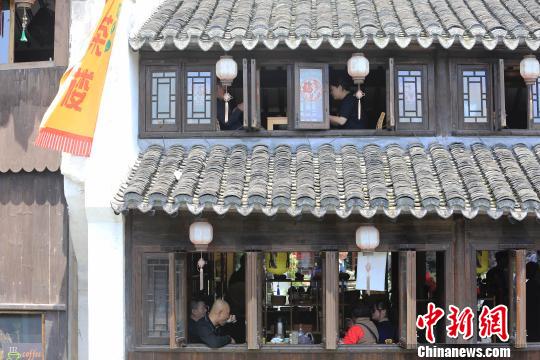 游客在上海新场古镇品茶休闲。 殷立勤 摄