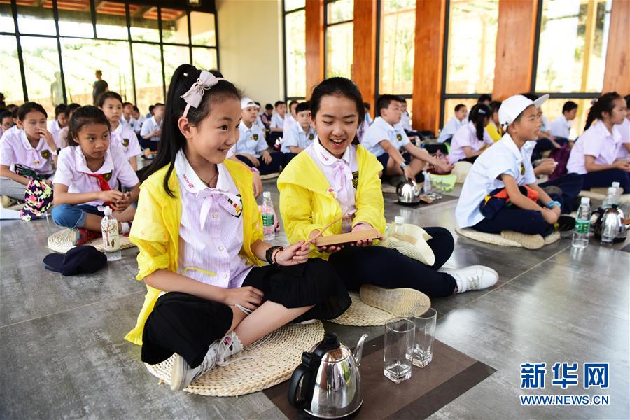 4月25日,小学生在定心茶园体验中心学习茶文化礼仪。新华社记者 王全超 摄