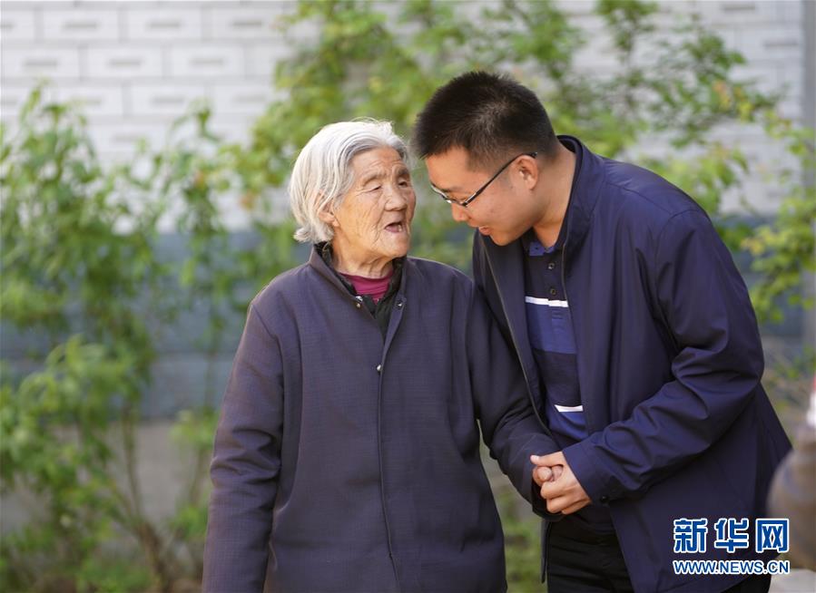 鲁昊(右)在贫困户王小品家了解她的近况(4月30日摄)。 新华社记者 高博 摄