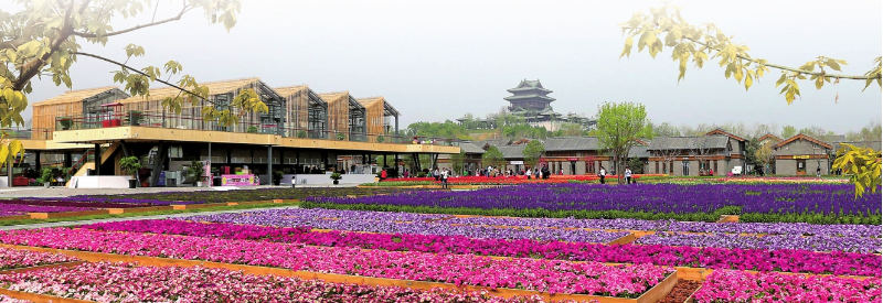 北京世园会园艺小镇展示内容包括花卉新品种展示园和国际设计师展园,繁花似锦的花卉景观效果,为来自世界各地的参观者带来一场园艺盛宴(摄于5月3日)。