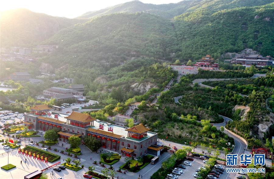 这是5月2日拍摄的盘山风景名胜区正门景观(无人机拍摄)。新华社记者 岳月伟 摄