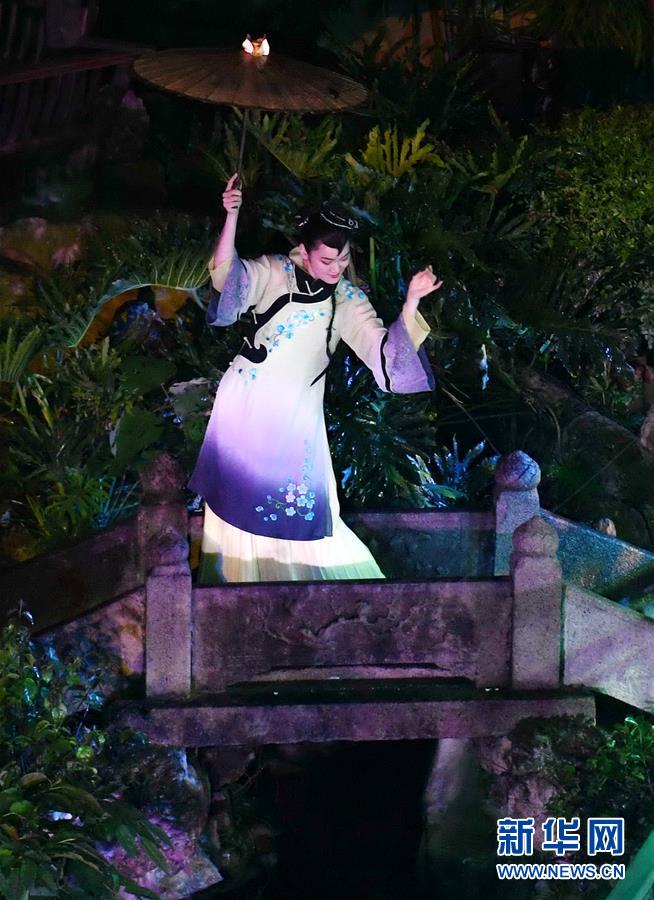 5月5日,演员在福州三坊七巷的水榭戏台表演歌舞《烟雨坊巷》。 福州三坊七巷为国内现存规模较大、保护较为完整的历史文化名街区,是中国十大历史文化名街之一。位于三坊七巷内的水榭戏台经常举办传统文化演出吸引游客慕名前来观赏。 新华社记者 林善传 摄