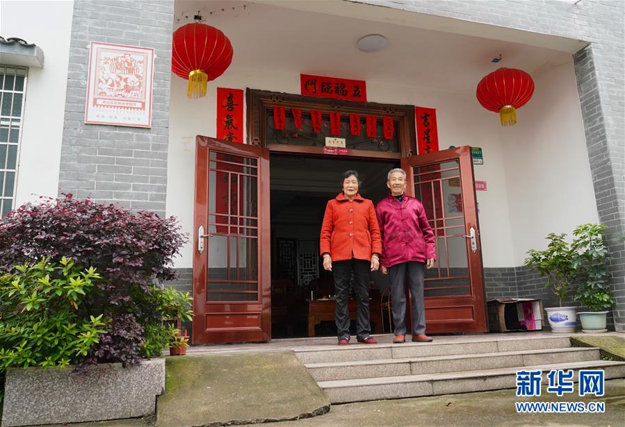 5月7日,江西瑞金华屋村居民华从祁和妻子在新家门前留影。 新华社记者 胡晨欢 摄