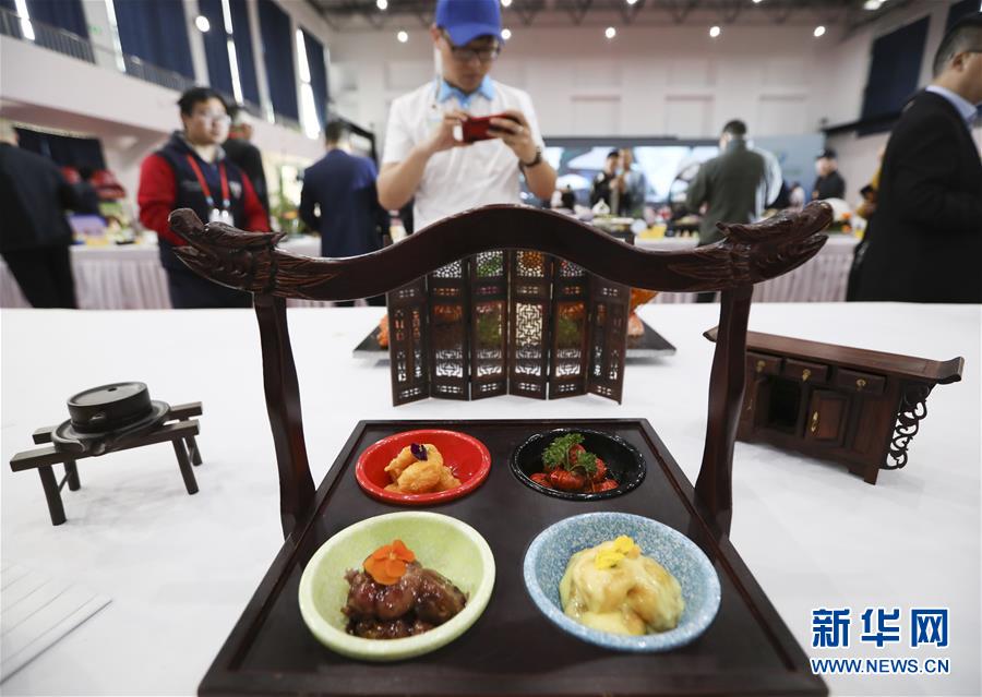 5月8日, 在2019中国淮扬菜大师邀请赛上,市民和游客观看参赛作品。 当日,2019中国淮扬菜大师邀请赛在位于江苏淮安的江苏食品药品职业技术学院开赛。淮扬菜大厨齐聚一堂展示厨艺,吸引众多市民游客参观。 新华社发(赵启瑞 摄)