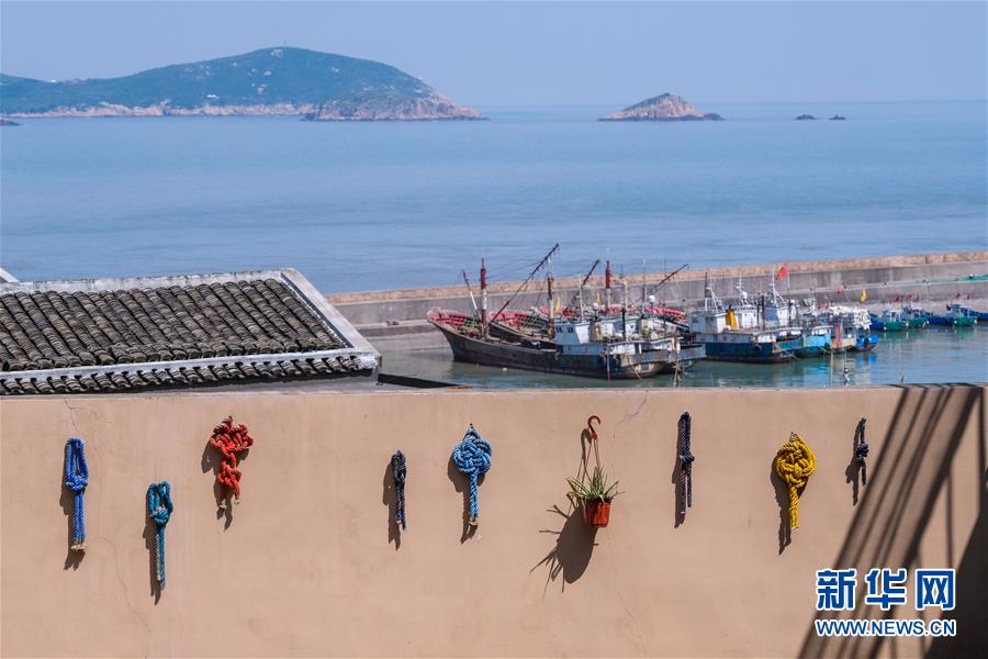 5月9日拍摄的黄龙乡峙岙村的美丽景色,墙上挂的是海岛特色绳结。 新华社记者 徐昱 摄
