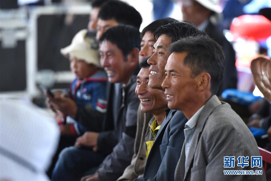 5月9日,拉萨市堆龙德庆区加入村村民在观看演出。