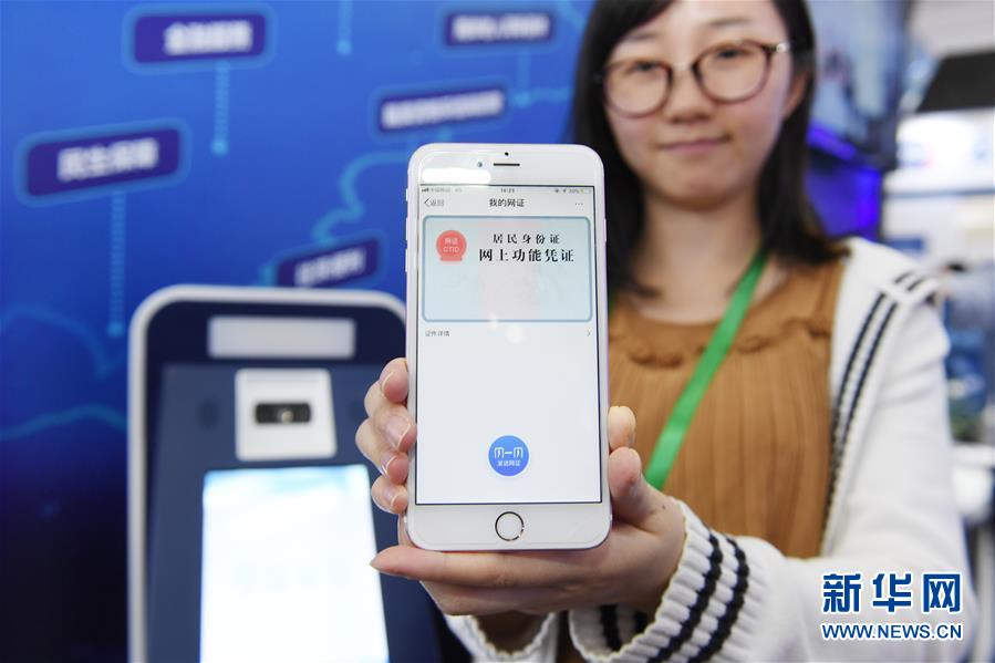 5月6日,在第二届数字中国建设成果展上,参观者在展示基于互联网+可信身份认证平台(CTID)技术的居民身份证网上功能凭证。