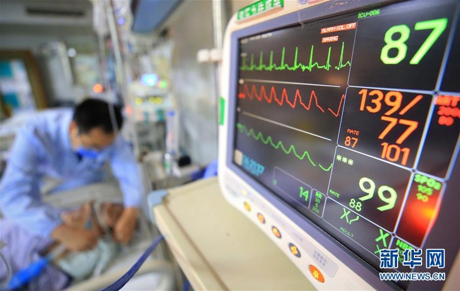5月9日,湖南省衡阳市南华大学附属第一医院护士康石墙在ICU病房进行护理工作。 新华社发(曹正平 摄)