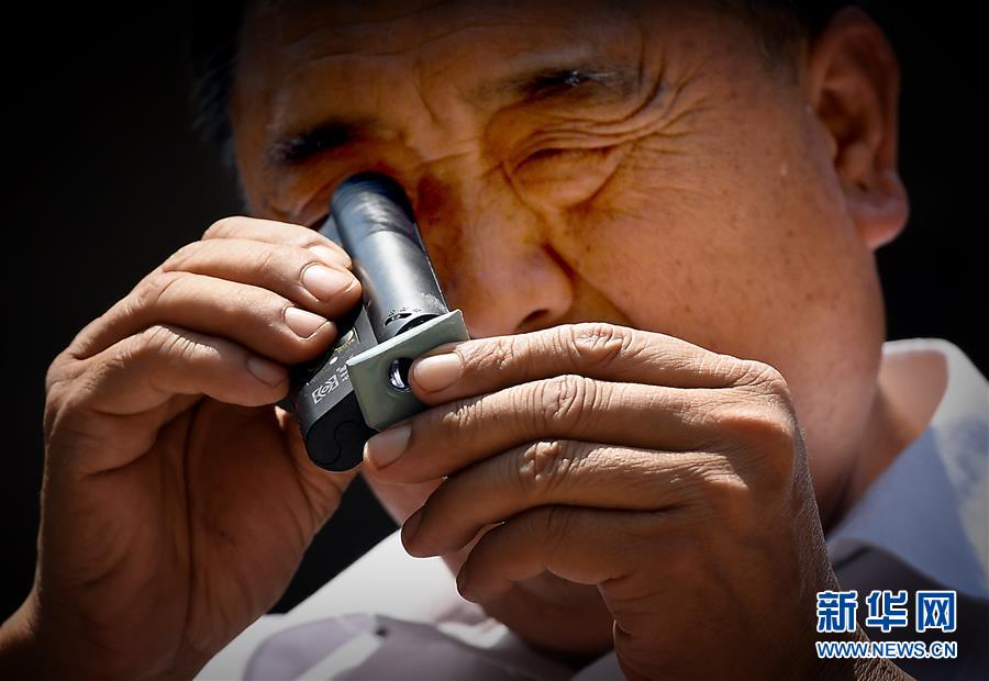5月9日,在河南省宝丰县大营镇清凉寺村的汝瓷作坊内,王君子在查看窑内试片的内部结构,确认是否烧制完成。 新华社记者 李安 摄