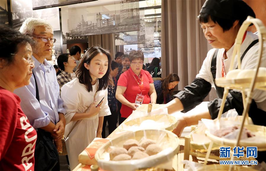5月10日,观众在活动现场观看糕点制作。