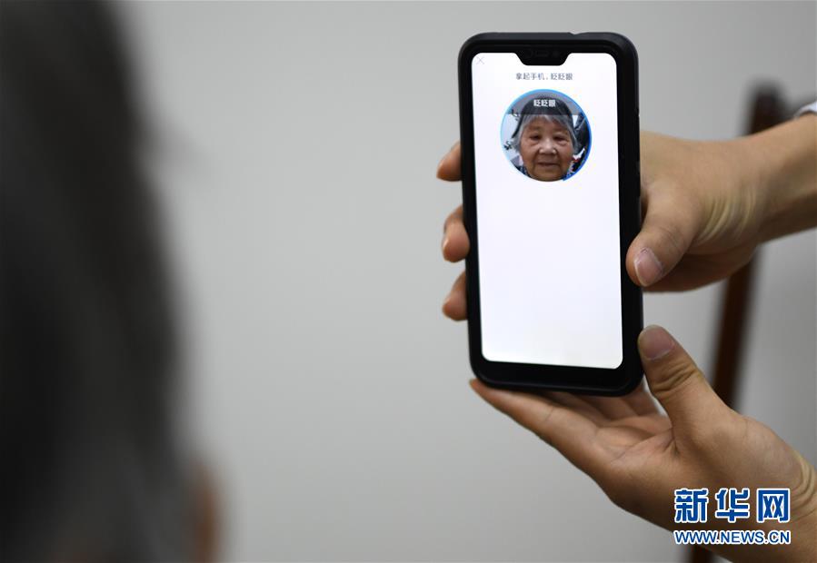 5月10日,合肥市蜀山区井岗镇十里庙社区居民通过手机支付宝养老金资格认证平台进行面部识别认证。