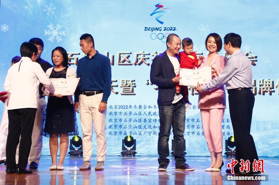 5月11日,北京石景山区广宁街道庆祝北京2022冬奥会倒计时1000天系列活动暨“冬奥社区”揭牌仪式在广宁街道高井路社区举行,高井路社区成为北京第一个被授牌的“冬奥社区”。图为在活动现场,北京冬奥组委机关党委专职副书记王风、石景山区委宣传部部长姚茂文为冬奥社区志愿家庭代表颁发证书。中新社记者 盛佳鹏 摄