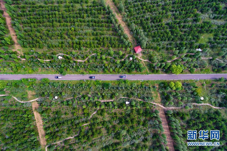 这是2018年8月7日无人机拍摄的山西省右玉县小南山森林公园。 新华社记者 曹阳 摄