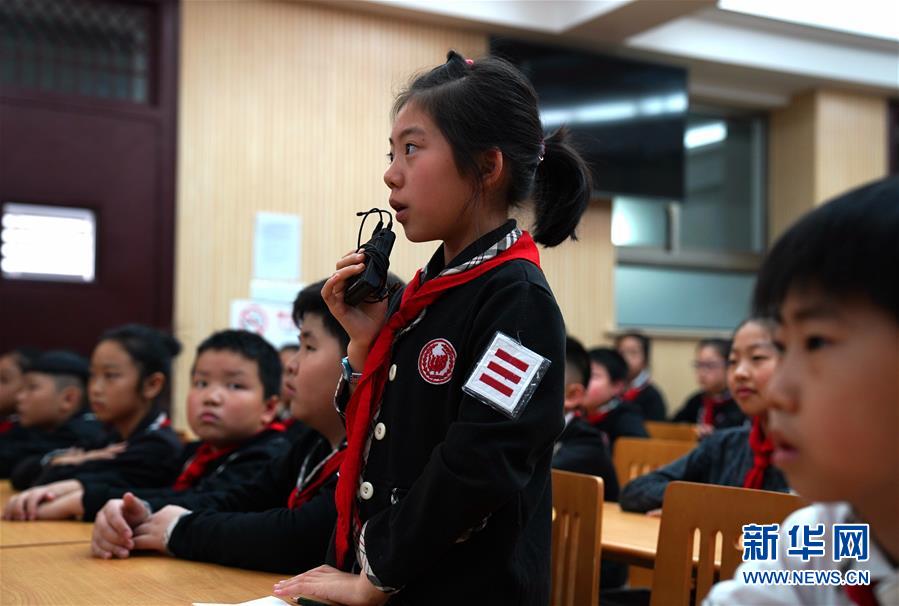 5月13日,一名学生在科普直播课上提问。 当日,上海同济小学开展了一堂科普直播课。正在南极开展大洋钻探的中外科学家通过视频连线直播的方式,向该校四年级学生介绍在南极海域开展大洋钻探的科考生活和科学意义。 新华社记者 张建松 摄