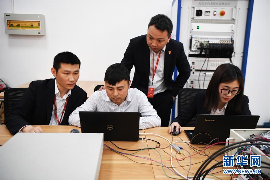 中车株洲电力机车研究所城市发展事业部的研发团队在会议室内进行无轨导向系统仿真测试(5月10日摄)。新华社记者 薛宇舸 摄