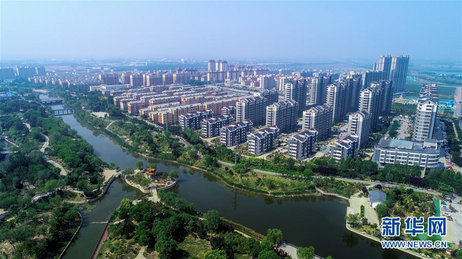 5月11日无人机拍摄的济南市商中河湿地生态绿色长廊。 初夏的泉城济南翠绿欲滴、泉水潺潺,市民和游客在大明湖、泉水公园等景区徜徉游览,构成一幅幅美丽图画。 新华社发(高启民 摄)