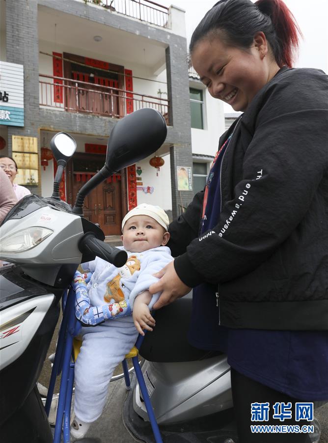 华屋村村民兰水娣在和孩子玩耍(5月6日摄)。 新华社记者 兰红光 摄