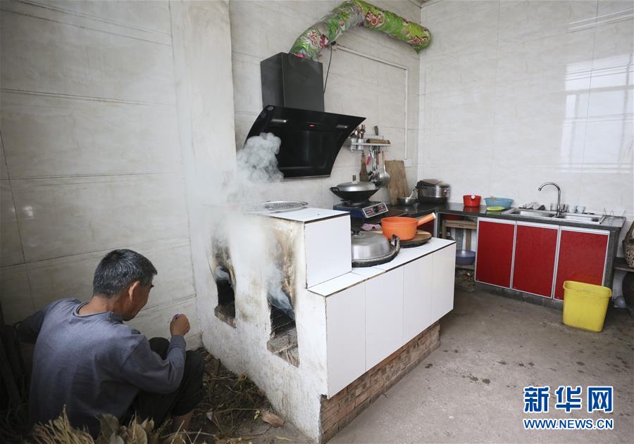 华屋村村民华割禾在家中烧饭,灶台上已装上抽油烟机(5月6日摄)。 新华社记者 兰红光 摄