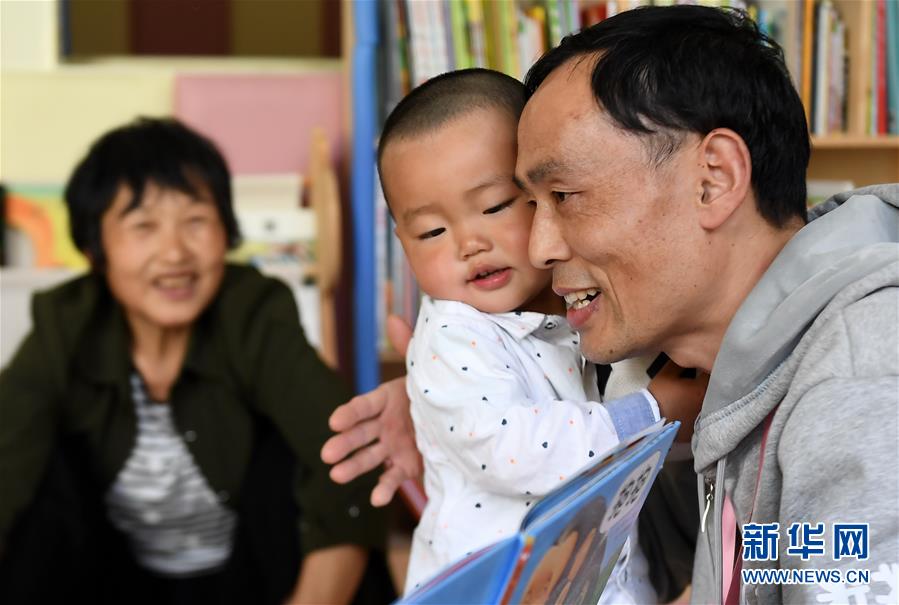 宁陕县城关镇城南养育中心内,养育师岳友林给孩子们讲绘本《抱抱》,一名小朋友主动去抱岳友林(5月11日摄)。 2018年上半年,地处秦岭腹地的陕西省宁陕县开始整县试点“养育未来”项目,为0-3岁孩子提供免费早教,对幼儿家长进行养育培训,帮助贫困地区孩子们更好地成长。如今,宁陕县已开设了26所“养育中心”,岳友林是全部61名养育师中唯一的男性。 在宁陕,青壮男性基本都会外出打工,从没外出打过工的岳友林自诩是个比较“另类”的丈夫和爸爸。因为爱人在乡镇小学当老师,工作忙,岳友林承担起大部分照顾孩子的责任。十年前女儿出生后,他当了大半年的全职爸爸,后来在县城开了一家家电修理铺,可以随时回家照顾孩子。儿子出生后,他看到县里养育中心招聘养育师的广告,自己符合全部条件,便动了心,觉得这份工作可以让自己更好地了解孩子。 经过笔试、面试,岳友林成功被录用为养育师,进入养育中心教幼儿家长如何带娃。面对以女性为主的家长群体,岳友林也经历过不被信任的时候。为了显得有亲和力,他每天都把胡子刮得干干净净;为了讲好故事,自己在家里跟着故事机和手机软件练习……如今,随着养育中心的逐步推广,家长的育儿观念也开始变化,逐渐认识到儿童早期教育的重要性。岳友林说,他想让更多家长认识到陪伴的重要意义,认识到男性也能带好孩子,让“父爱”更好地护航孩子的成长之路。 新华社记者 刘潇 摄