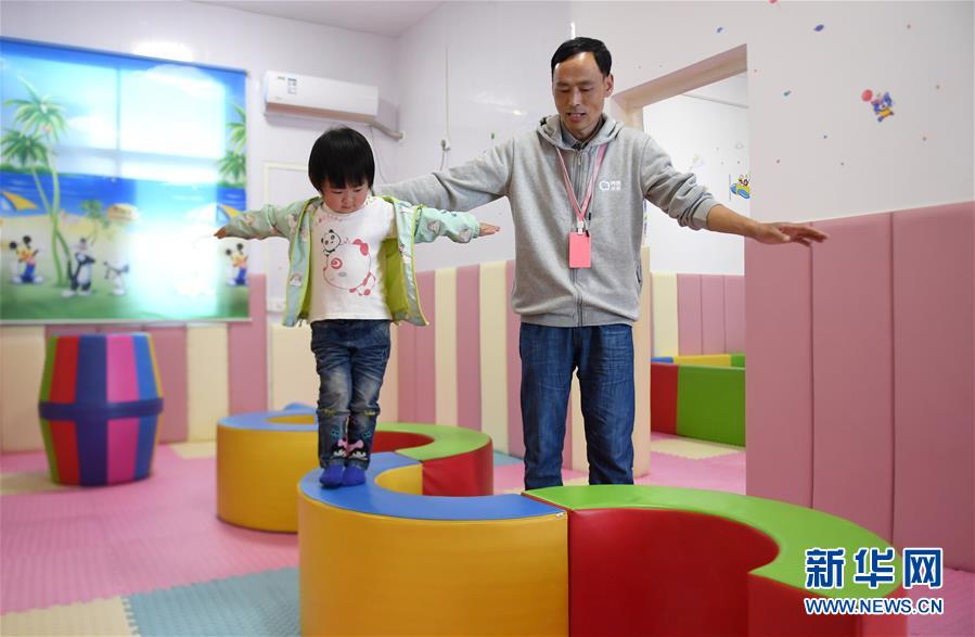 宁陕县城关镇城南养育中心内,岳友林带领小朋友做感统训练(5月11日摄)。 2018年上半年,地处秦岭腹地的陕西省宁陕县开始整县试点“养育未来”项目,为0-3岁孩子提供免费早教,对幼儿家长进行养育培训,帮助贫困地区孩子们更好地成长。如今,宁陕县已开设了26所“养育中心”,岳友林是全部61名养育师中唯一的男性。 在宁陕,青壮男性基本都会外出打工,从没外出打过工的岳友林自诩是个比较“另类”的丈夫和爸爸。因为爱人在乡镇小学当老师,工作忙,岳友林承担起大部分照顾孩子的责任。十年前女儿出生后,他当了大半年的全职爸爸,后来在县城开了一家家电修理铺,可以随时回家照顾孩子。儿子出生后,他看到县里养育中心招聘养育师的广告,自己符合全部条件,便动了心,觉得这份工作可以让自己更好地了解孩子。 经过笔试、面试,岳友林成功被录用为养育师,进入养育中心教幼儿家长如何带娃。面对以女性为主的家长群体,岳友林也经历过不被信任的时候。为了显得有亲和力,他每天都把胡子刮得干干净净;为了讲好故事,自己在家里跟着故事机和手机软件练习……如今,随着养育中心的逐步推广,家长的育儿观念也开始变化,逐渐认识到儿童早期教育的重要性。岳友林说,他想让更多家长认识到陪伴的重要意义,认识到男性也能带好孩子,让“父爱”更好地护航孩子的成长之路。 新华社记者 刘潇 摄